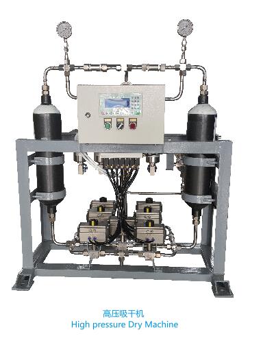 來自壓縮機的壓縮氣體,經前置和精密除油過濾器,除去氣體中夾帶的固體雜質、游離態水滴和油霧進行深度脫水干燥,然后經后置過濾器即可外輸出無水、無塵、無油的高品質潔凈氣體。干燥罐吸附飽和后在PLC程序自動控制下,可切換再生。